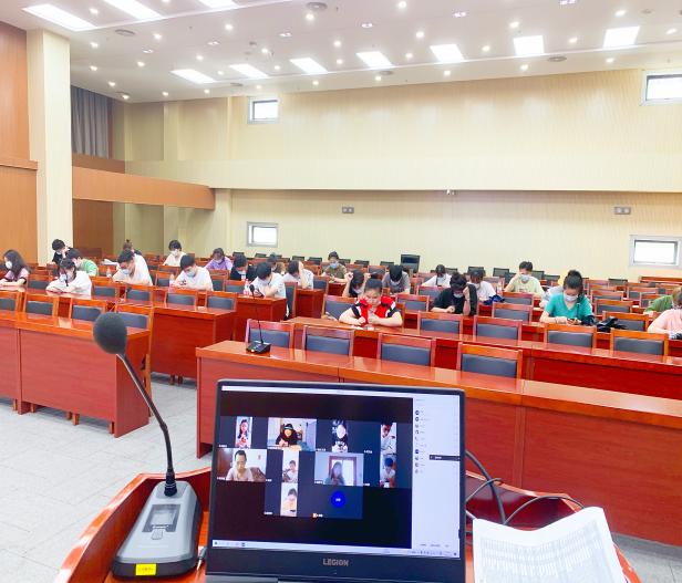 综合面试包括学员自我介绍、简答题等,以考察学员的综合能力,线上的考生通过腾讯会议APP完成。基地主任、教学秘书担任面试考官。经过两天紧张有序的考试,共完成39名考生的招录考试。