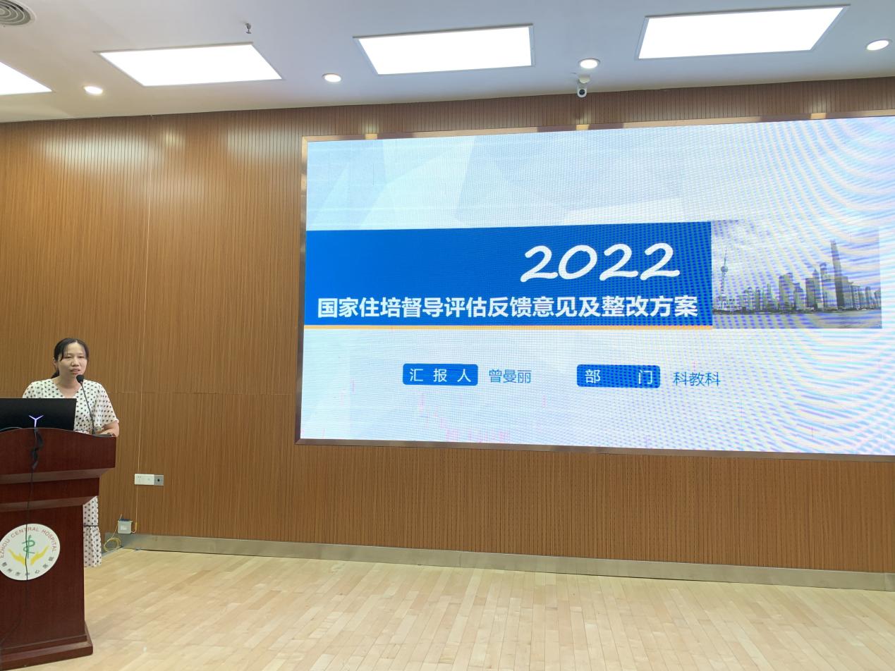 科教科副科长曾曼丽梳理了国家住培专项督导组提出的问题,从科教科、专业基地及轮转科室、医院三个层面制定了问题清单,并提出了整改建议,同时,提出了住培工作下一步的重点。