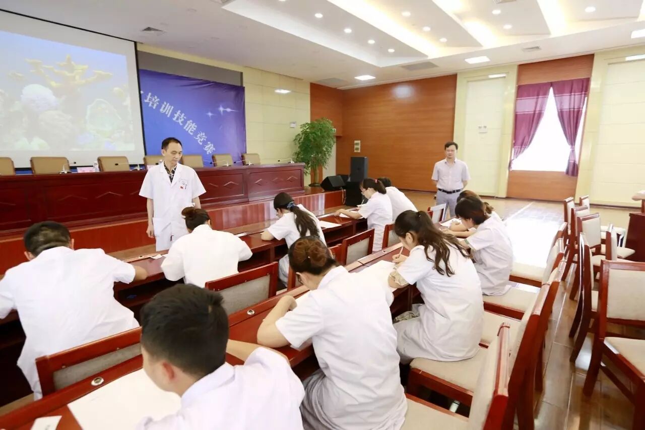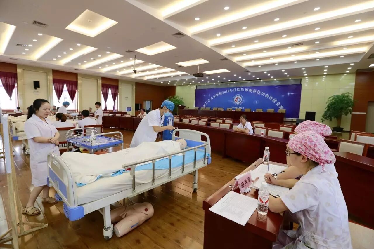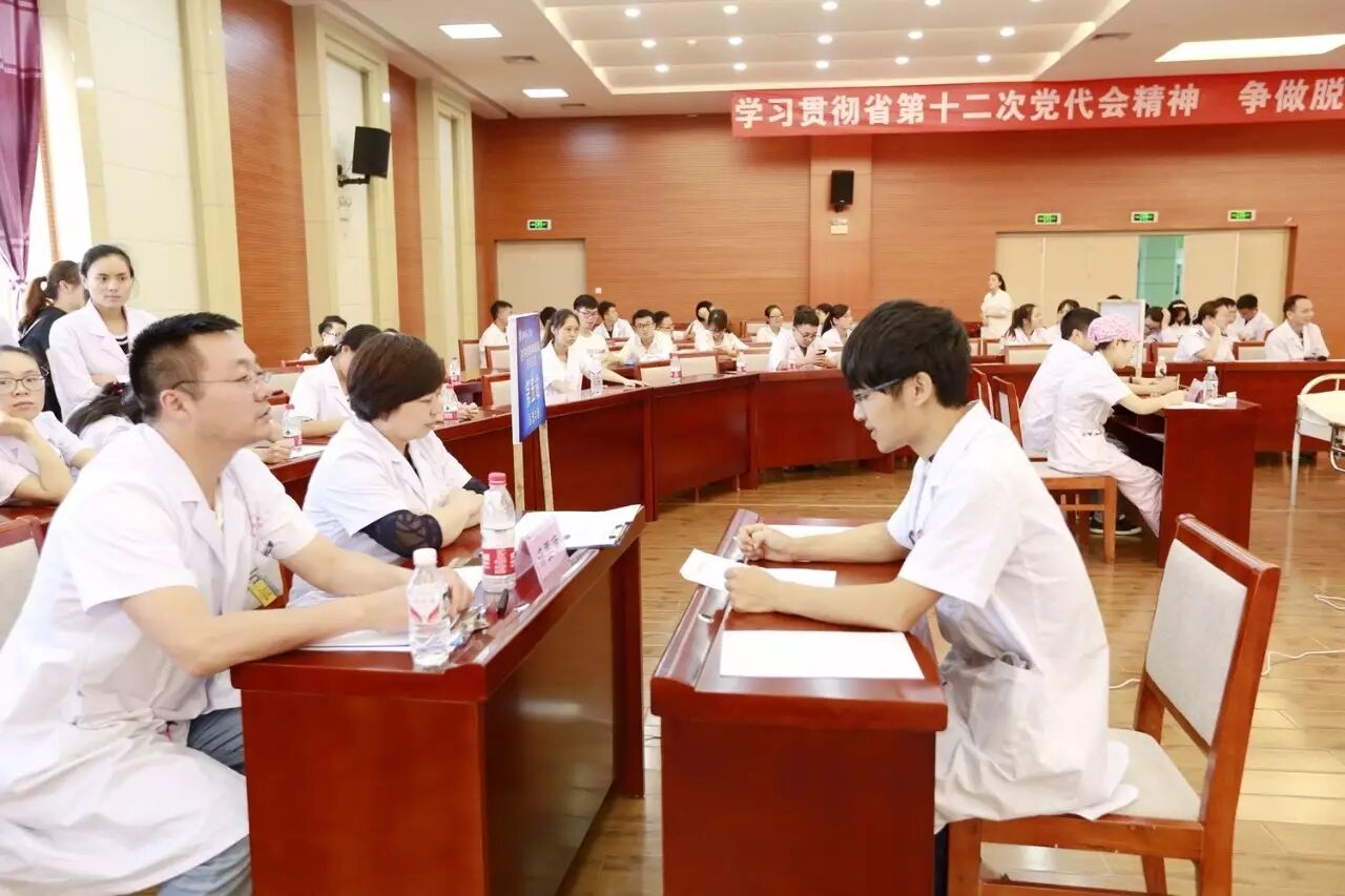 竞赛分两轮进行:第一轮进行笔试(病例分析、病史采集,心电图、检验结果、X线结果判读);第二轮进行技能操作,共设体格检查、常规穿刺(腰椎穿刺、骨髓穿刺、腹腔穿刺、胸腔穿刺)、吸氧、导尿或下胃管、无菌操作(消毒铺巾)、心肺复苏、医患沟通六个站点,选手们精神抖擞,沉着应战,整个竞赛场面严肃而紧张,充分展现了我院住培学员充满活力的精神面貌和风采。