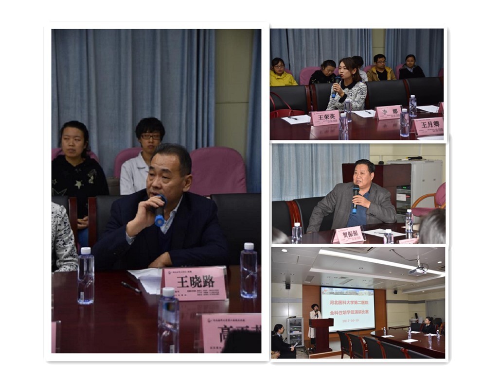 2017年10月19日晚上19:00,在河北医科大学第二医院全科医疗科示教室,一场别开生面的全科医学专业住院医师规范化培训学员演讲比赛正式拉开帷幕,全科医疗科医师和全科住培学员近200人参会。比赛由全科基地负责人王荣英教授主持,河北医大二院王晓路院长亲临比赛现场并发表了重要讲话,同时出席比赛的还有医务处领导、全科医疗科贺振银主任以及全科住培基层实践基地主任。