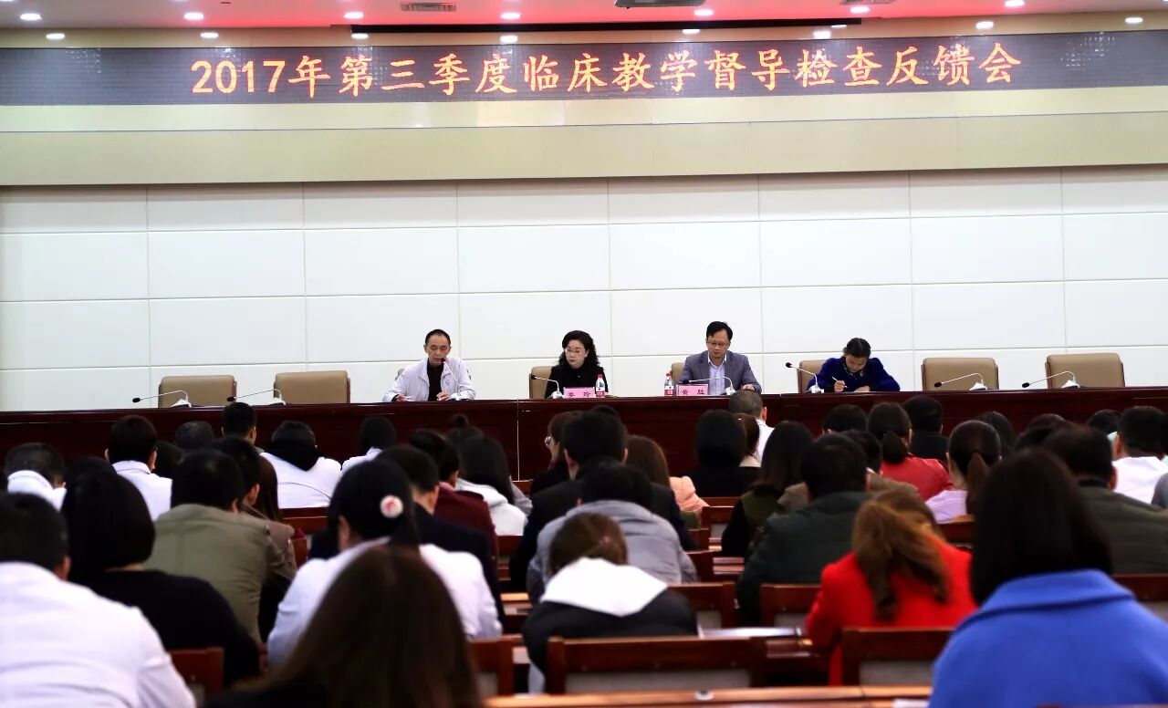 会议听取了临床教学部对2017年第三季度住院医师规范化培训暨临床教学督导检查、2014级住培学员结业过程考核和2017年全院执业医师考试情况汇报。