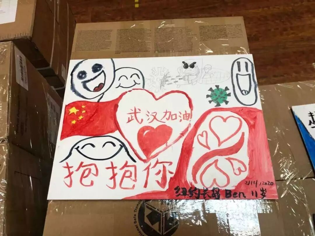 当地学生通过一幅幅充满爱心的画作和鼓励的话语,用童心支持一线医护人员(图片来源: 美国华人医师会ACAP微信公众号)