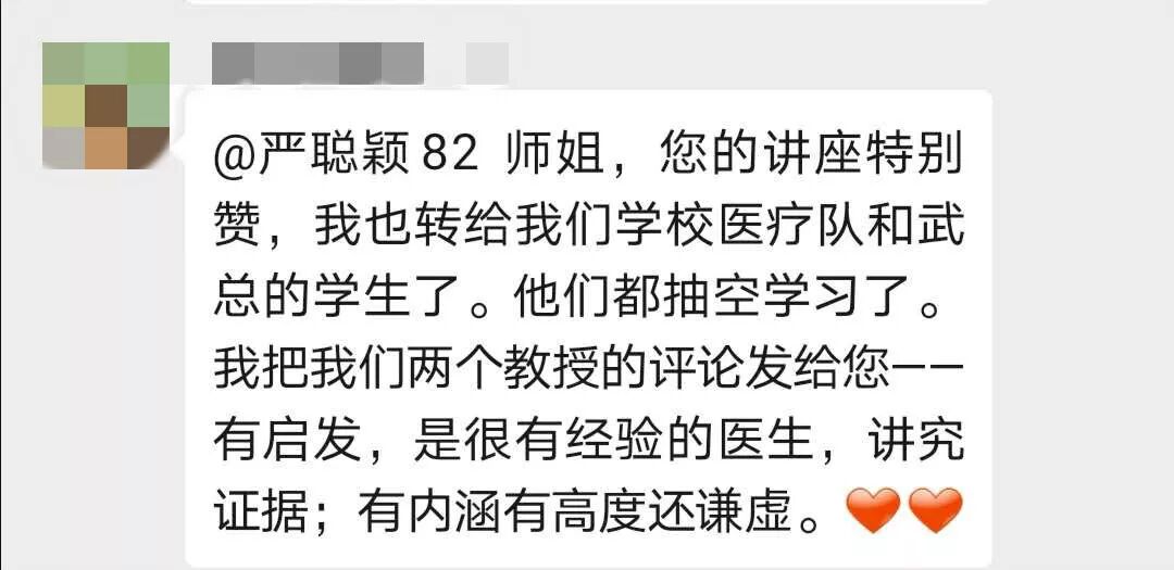 严聪颖的分享被校友们转发给更多有需要的一线医护人员,得到一致好评