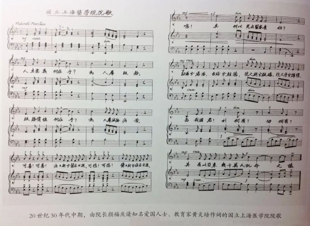 国立上海医学院院歌,作词:黄炎培 作曲:徐希一