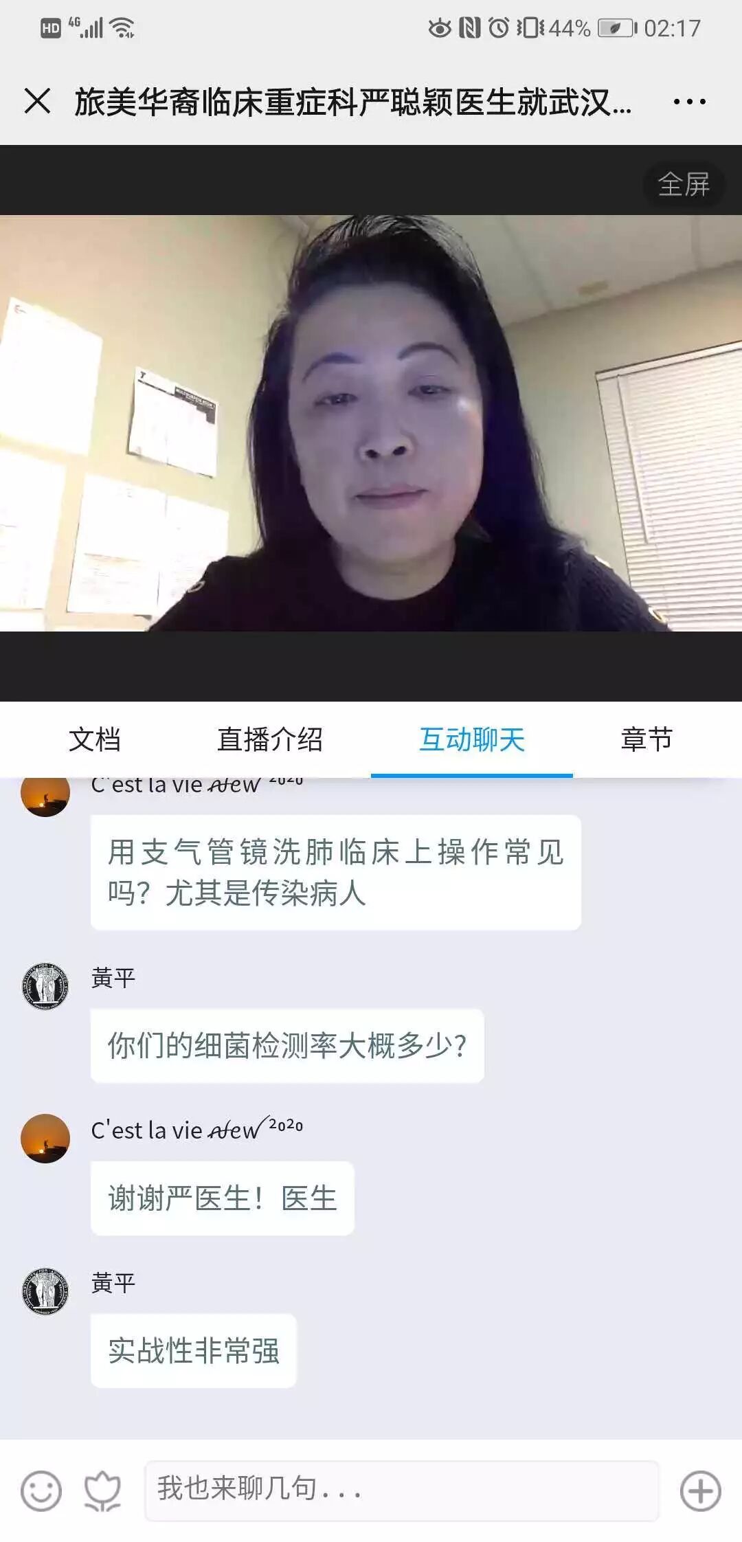 严聪颖校友每天忙碌工作之余,通过在线视频分享助力国内同行抗疫