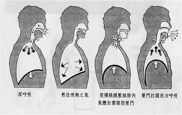 ②缩唇呼吸 嘴唇半闭时呼气,类似于吹口哨的嘴型,这个方法可防止细支气管的塌陷,连同吹瓶呼吸和发音呼吸,均属于抗阻呼吸。